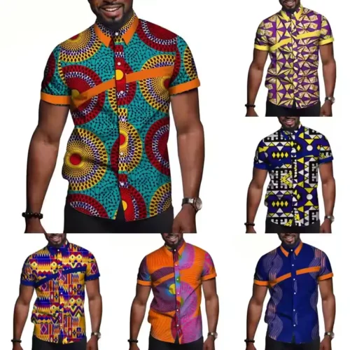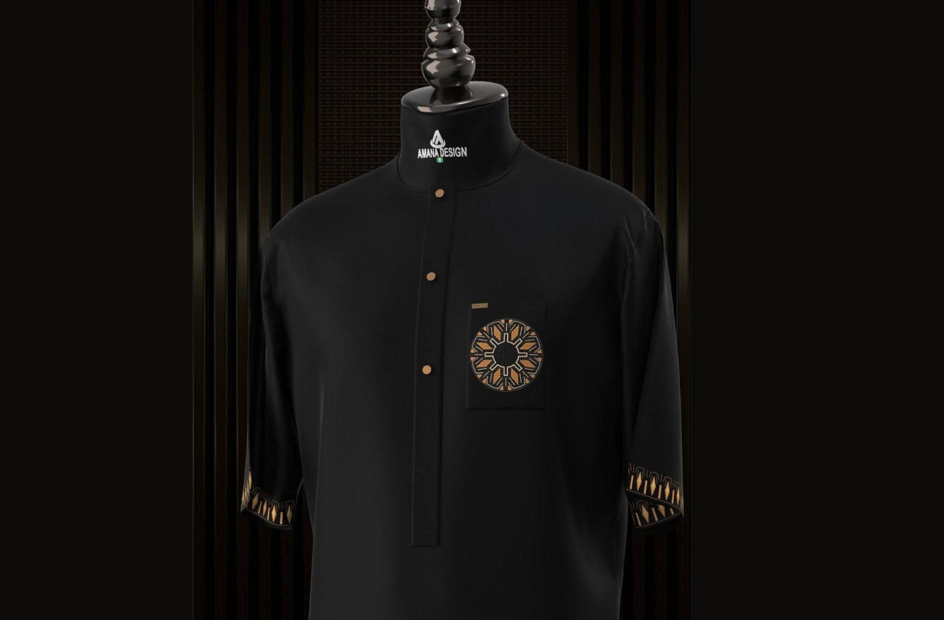 Amana Design: Black Men’s Top with Gold & Geometric Embroidery