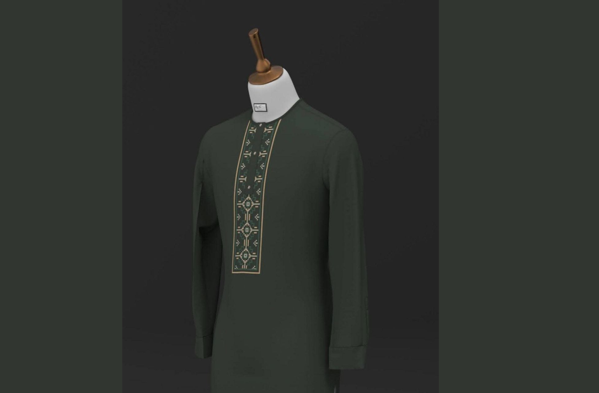 Embrace traditional elegance with this refined dark green long-sleeve top, featuring exquisite geometric embroidery down the front. Perfect for cultural events, casual smart wear, or adding a touch of heritage to your everyday style.