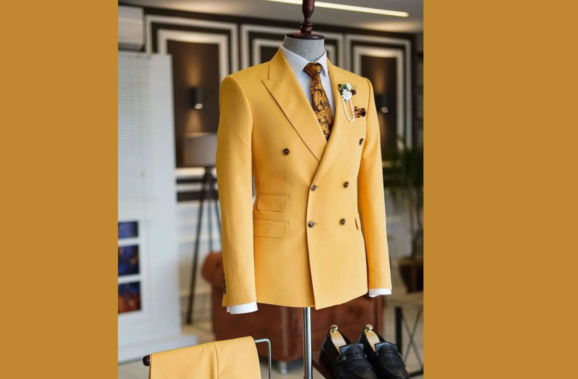 Amana Design: Black Men’s Top with Gold & Geometric Embroidery