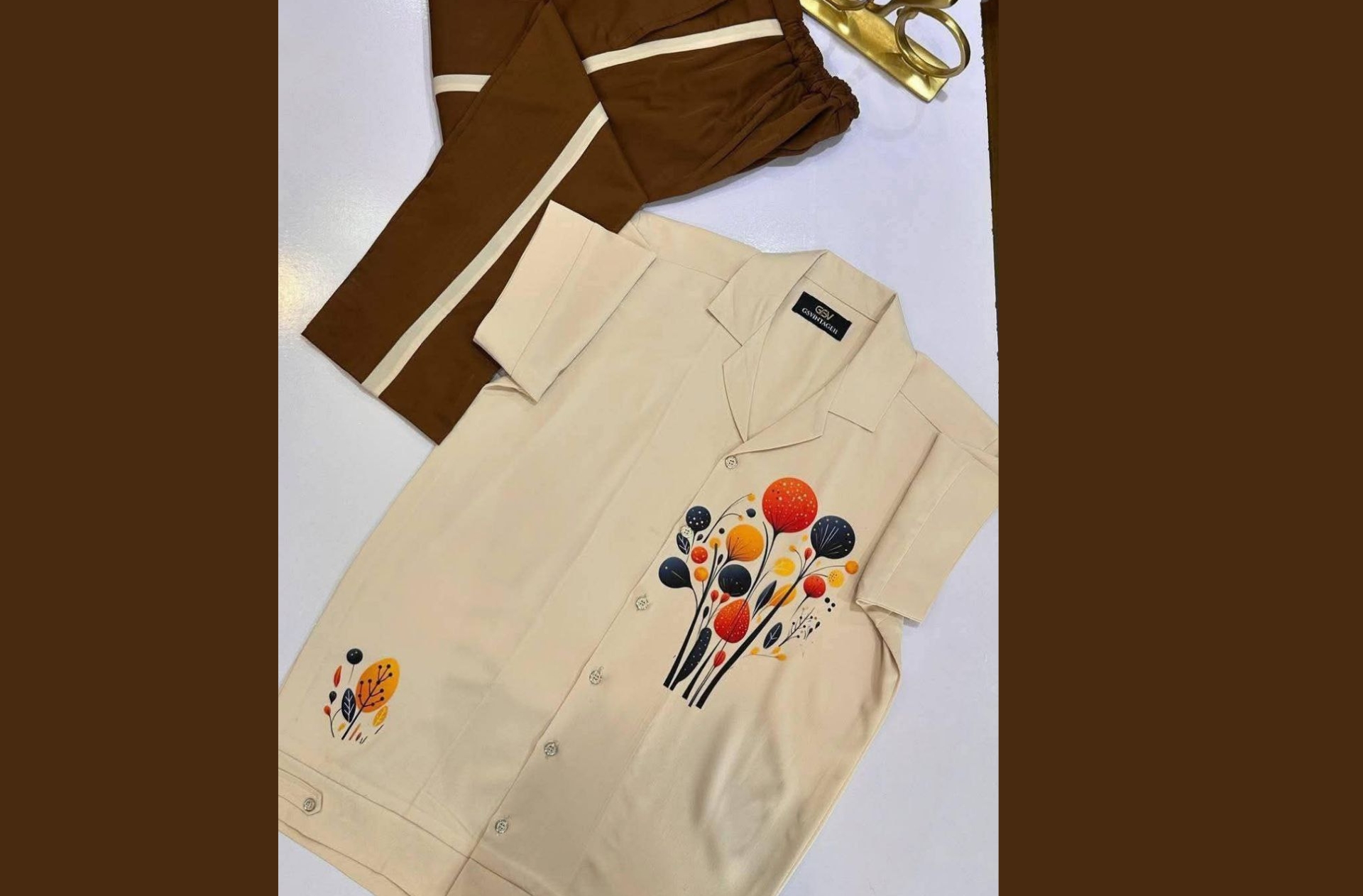 Modern Cream & Brown Co-ord Set with Abstract Floral Print